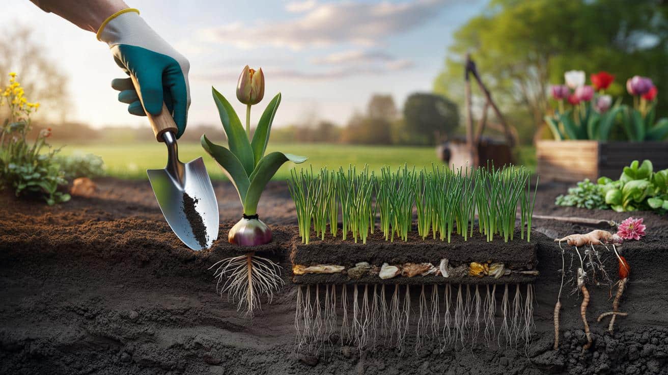 | Spring bulbs (tulips, daffodils, ornamental alliums) | Base of the bulb positioned roughly 7 cm below the surface in mild climates. |