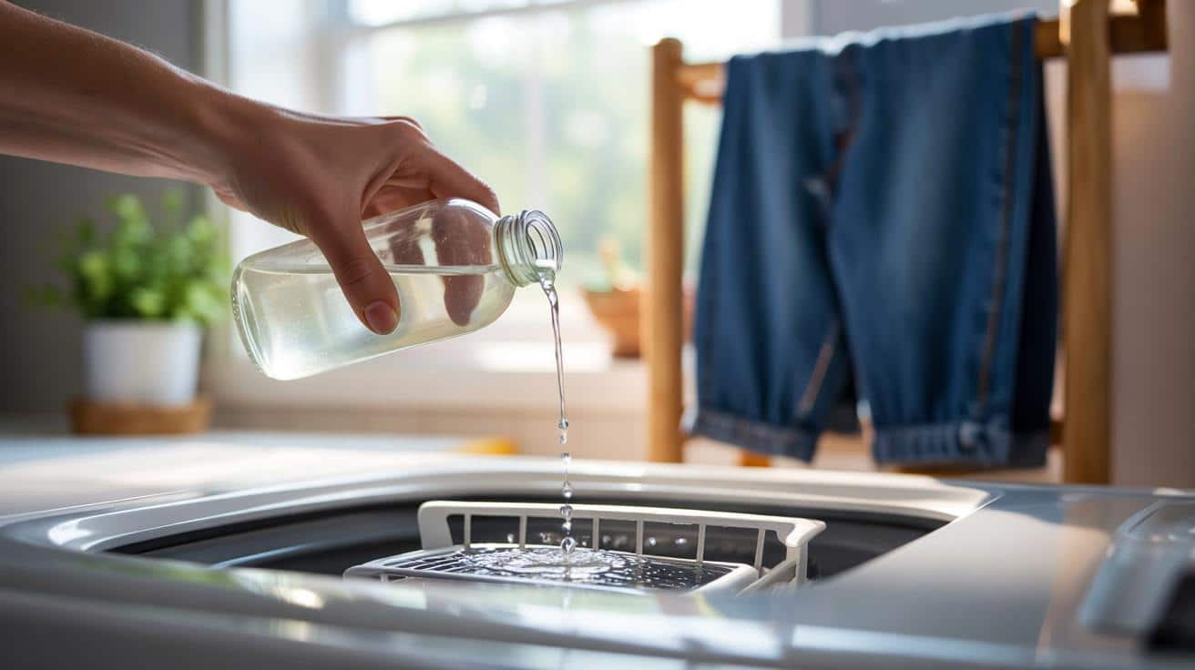 | 100 ml weißer Essig im Spülfach | Milde 5-%-Säure, im letzten Gang | Weichere Jeans ohne Weichspüler |